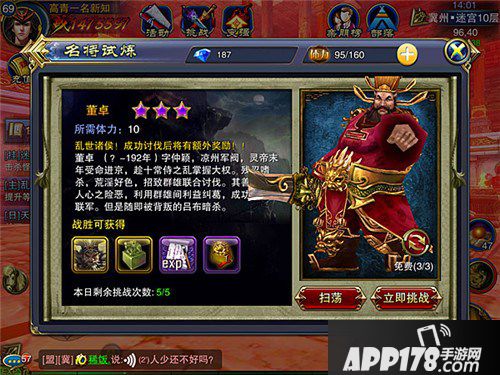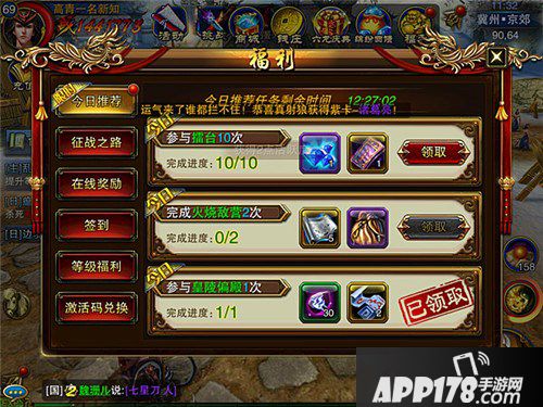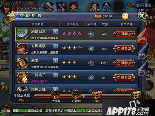 接下来要考虑的,就是体力的合理分配了。每天自然恢复的体力有120,另外还有好友赠送的,种植的体力果,每天的体力数量还是比较多的。这个最好还是不要浪费。体力的选择可以用于名将试炼、黄陵密室、锁妖塔、八阵图这些,因为这些玩法中的奖励对于提升战力是非常重要的。