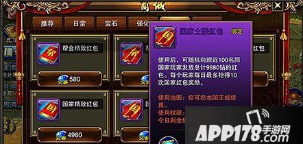 一个人再强,也不能保证国战的胜利。所以到了后期,如果自己战力较强,但是国力较弱的话,经常购买一些国家土豪红包、帮会红包,来带动国家的发展,是舍小利获发展的必要途径。尤其是每次国战之后,胜利了发红包,对于国内每个人的鼓舞肯定是非常大的。