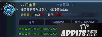 八门金锁是手游六龙争霸当中天煌的怒气技能,也是天煌所最后学到的技能。威力大范围广,释放完之后屏幕之中再无怪物的存在当然,这个技能的技能等级也是非常难升级的。