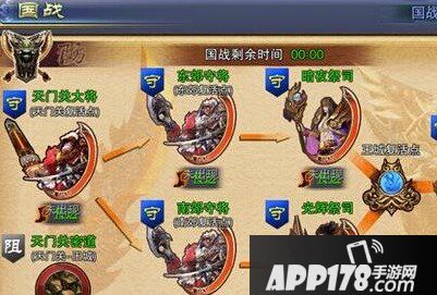 3:国战开始后会弹出传送页面,并且刷出第一个NPC天门关大将,被击败后依次会刷出南郊大将,东郊大将。当后者有任意一个被击败,会刷新出光明祭司,暗夜祭司和守护神。获得其中任意一个祭司归属权后才可对守护神造成影响,而击败或者守护则是本场战争胜败的关键。