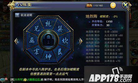 可以看出来所提升的属性加成要比前八阵要高,而副本内的挑战难度也是更大,不过对于已经过了前八阵的我们来说,并没有太大的难度了,所以玩家一定不要错了地烈阵了。那么就来看看破阵的四门顺序吧!