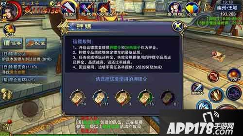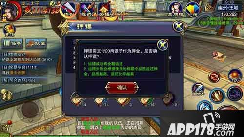 押镖任务在游戏中属于核心玩法之一,玩家每天都可前往王城军需官处获取任务,支付一枚押镖令以及20两银子的押金即可领取任务。而其中押镖令的品质高低将决定所接取镖车的最低品质如何。