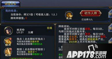 师徒系统不管是对师父还是徒弟好处都是显而易见的。师徒通过互送道具隐贤玉和合生酒,徒弟可以获得大量经验,初期可以算是原地站着也升级啦!师父通过徒弟的努力升级和活跃度可以获得大量奖励,同时可以获得师德值,师父的师德值会进入排行榜,并且还有对应的拉风称号可以获取,所以追随潮流的师父们一定要经常给小徒弟加油打气,一起努力提升战力,上阵杀敌!
