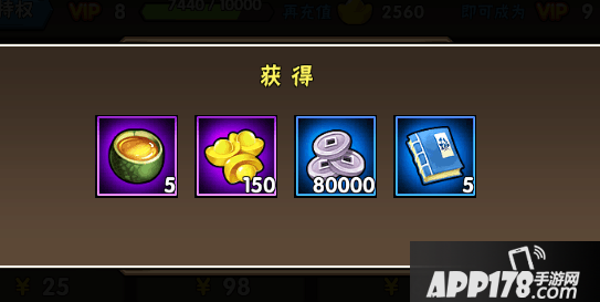 元宝*150 ,铜钱*80000,技能书*5,弹跳甲鱼汤*5