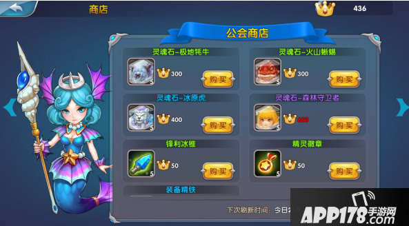 首先森林守护者是在公会商店里的,这就要先去蹭个公会。一般公会两三天就可以开启公会商店了。平民和小R玩家选择金币捐献一天250贡献,有能力者可以钻石贡献。公会任务里面可以领110贡献。公会第二个据点就有产出贡献,一天大概产出250贡献。这样一天600贡献,商店里刚好可以换出5个魂石。一个月刚好换出整只森林守护者,以后有开其他功能时兑换速度应该也会更快。