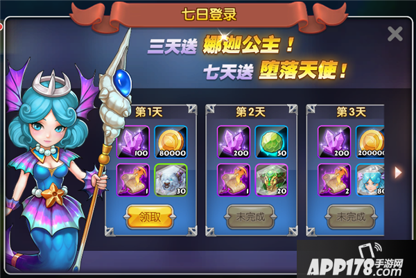 新手活动中奖励也是相当丰厚,登录第三天就送三星娜迦公主,另有魂石、龙魂、钻石,还有等级奖励、签到等,都是免费赠送的奖品,这些可别漏掉了哦!
