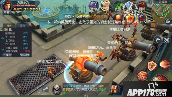 这次小编更加关注的是国战新增的投石机和守城炮,这也是游戏的卖点之一。国战开启的第一时间,投石机和守城炮便同时出现,所有玩家都可以点击后自由操控,系统会根据先后点击顺序确定归属。