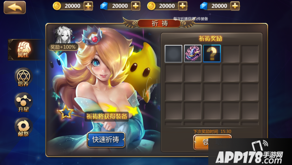 如上图所示,在祈祷完成后,将会获得相应的装备和经验哦~问号框框代表着祈祷正在生成的装备。如果购买女主时装,女主的形象和动作都会发生特殊变化哦~