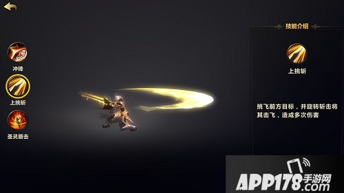 上挑斩:挑飞前方目标,并旋转斩击将其击飞,造成多次伤害。剑盾连击技能是菲欧纳职业特性最好的诠释,以盾为冲击契机,以剑为攻击手段,剑盾合璧,浑然一体,在动作操作上赏心悦目,且伤害和控制也十分实用,动作美学与暴力的完美结合。