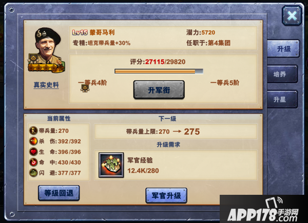其中,军官升级可以提高军官的当前属性;