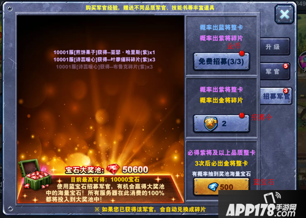 招募到重复的军官可以用来升星,不用担心召唤到太多重复的将领没有用压箱底。