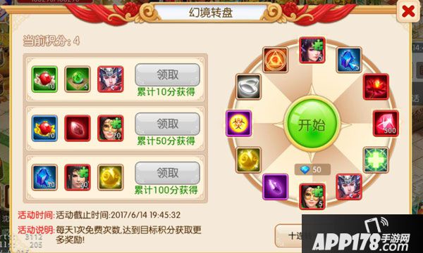 每转一次可获得1积分,得到累计10分、50分、100分还可兑换相应的物品哦~