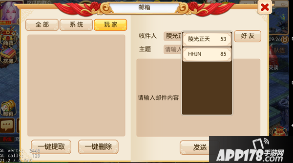 玩家信件:选择要发送信件的好友,然后输入内容点击发送。