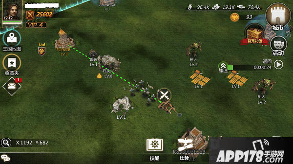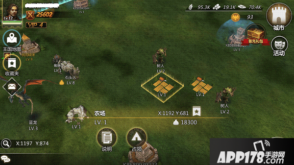 除了自己建造的资源田自给自足之外,王国地图中也潜藏着丰富的资源,各种各样的资源田、怪物、城堡……都是我们天然仓库。
