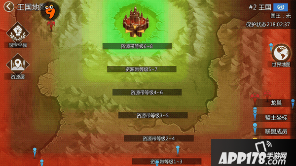 这些资源分布是越靠近王国地图的中心,怪物和物资等级越就高,如果你城堡等级高了,就把城堡往王国中心里面迁移,以便于扫荡高级怪和采集高级资源。但是一般越靠近王国中心城堡也就越多,争夺资源的人也就越多了。