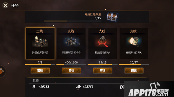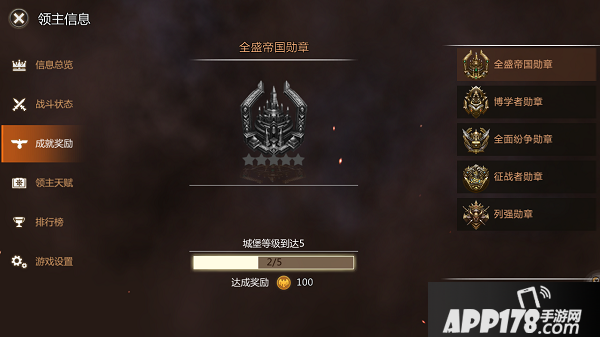 升级城堡、科技研究、参与战争达到一定的条件后可激活成就奖励,获取独特勋章,奖励丰厚金币,所有成就达成共可获得6000度金币哦!