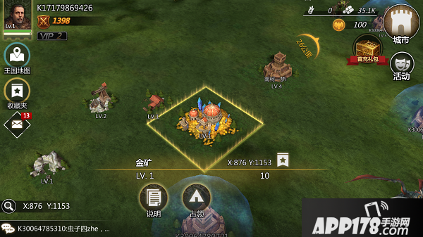野外分布了很多不同的资源点,金矿可以直接产出金币,快派你的大军去占领采集吧