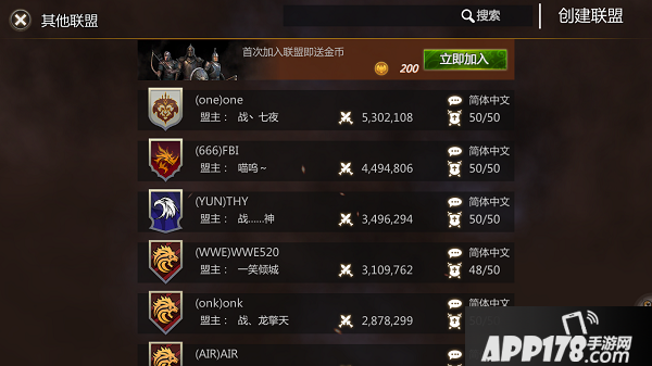 初次加入联盟,系统将会奖励200金币助你与盟友一起征战天下