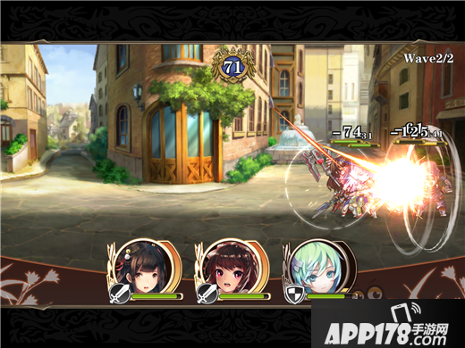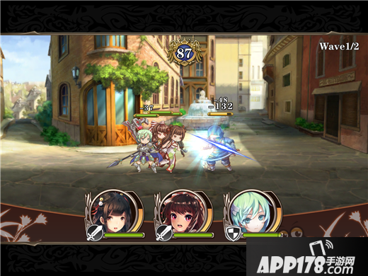 游戏战斗乍看非常普通,就是最大 4 人小队自动进入战斗,玩家手动点击头像发动技能。但是位移机制 Ring Out 系统的存在,则比传统的前中后排卡牌游戏要有意思得多。Ring Out 系统在卡牌的属性上增加了“坚守”和“击退”两个属性,坚守则是守住阵线不被敌人打得节节败退,击退就是步步紧逼将敌人打退到画面的边缘,只要能形成优势击退,那么攻高血厚战力强的角色很可能因为坚守值不高而快速被击退到地图边缘,然后直接掉进黑洞退出战斗。