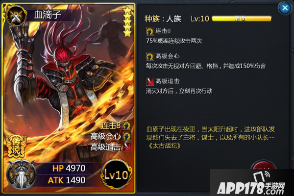 血滴子以输出稳定著称,“高级会心”的存在保证了其在面对闪避,格挡单位时,依然能够打出应有的伤害,“连击”“高级追击”又保证了血滴子在残局中优越的收割能力。一个伤害颇高的血滴子,不光是五星卡牌,甚至连六星的肉盾都要畏惧三分。