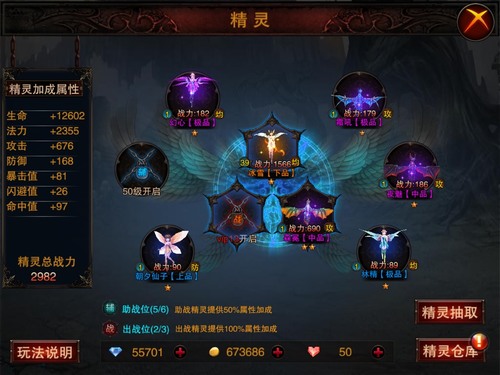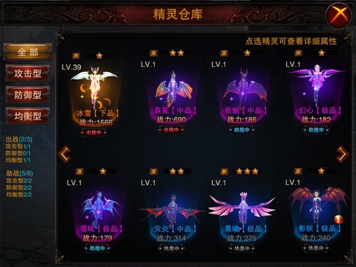 抽到的精灵会储存在精灵仓库里,并且按照品质的高低先后排序。虽然叫精灵宠物系统,但事实上除了精灵,还有不少龙形宠物,可爱与帅气兼得,令人耳目一新。精灵按照属性分为攻击型、防御型和均衡型,点击精灵形象,就能看到精灵的详细属性。
