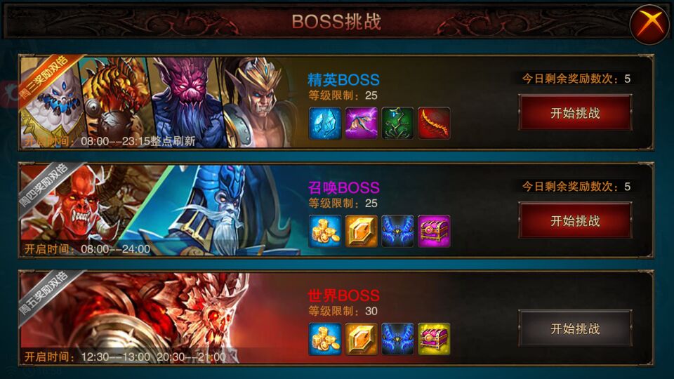 刷图副本已经不能满足你的杀戮欲望?还有一群无恶不作实力超群的终极BOSS在等你来战!新开放的BOSS挑战系统里,有三种副本玩法,分别是精英BOSS、召唤BOSS和世界BOSS,挑战难度再升级!尤其是百人团战世界BOSS,成百上千人在同一屏幕中共同厮杀究极BOSS炎魔,疯狂输出,场面火爆,刺激程度超乎想象。