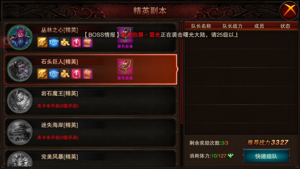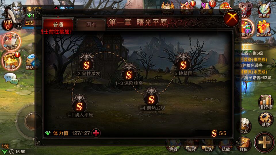 在《龙与精灵》的魔幻世界中,英雄们最重要的任务就是用战斗换回曙光大陆的和平。目前曙光大陆大部分领土已被魔兽侵占,玩家们进入游戏后,通过主线任务副本,在每个任务场景与魔兽对战取胜后,即可收复该片区域。主线任务副本分为两个难度:普通和困难。困难副本虽然比较难通关,但奖励也丰厚很多。