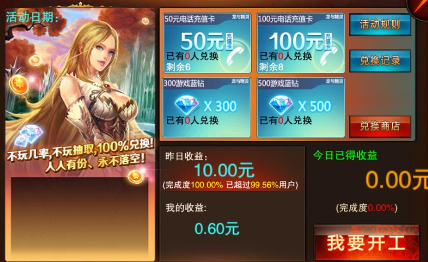 送什么都不如送钱实在,《龙与精灵》首创“玩游戏赚零钱赚话费”活动系统,玩家真正的福利所在,最快乐最轻松的赚钱方式有木有?