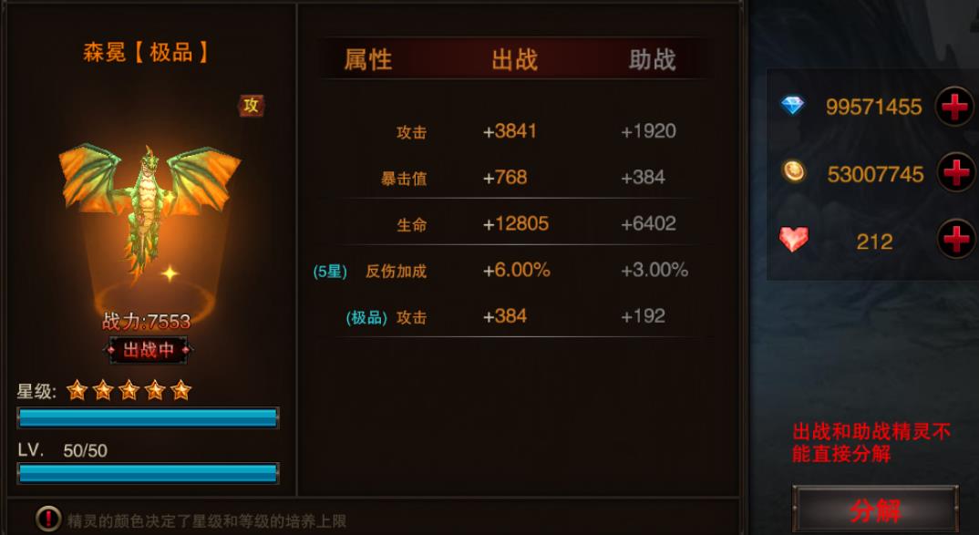 精灵系统,是《龙与精灵》游戏的一条重要的养成线。玩家可以将已拥有的精灵设置为出战和助战两种状态,无论哪种状态,都可以为玩家带来巨大的属性加成。