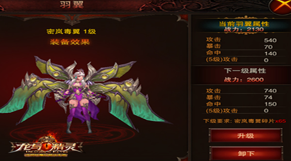 不仅仅是华美的外表,每个羽翼都有其独特的强大属性,“密岚毒翼”具有强大的攻击、暴击、命中加成,5级属性攻击,使拥有它的人在战斗中所向披靡。
