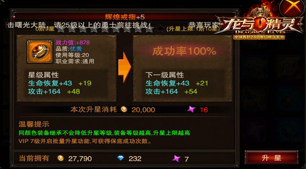 在《龙与精灵》中,装备的玩法是非常有深度的。每个玩家都可以通过对装备进行强化、升级、升星、洗练等行为大幅度提升装备属性,打造只属于自己的独一无二的神兵利刃。