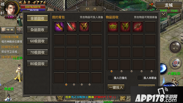 打了无数BOSS攒了很多多余装备,即用不上又占背包?无需烦恼,物品回收功能可以将其转换为大量奖励哦!