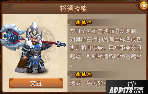 文丑技能有4个,最主要的技能则是第一个,文丑在短暂蓄力后会攻击其所在行的所有目标并且定身,同时距离文丑越远的目标则伤害越高。这个技能是秒远程的核心,很多远程武将太脆会直接被秒,那么如果你上阵的武将有远程的则要把握文丑蓄力期进行上下移动躲避这个技能,保险起见可以留医生技能保脆皮。如果你是全近战武将则可以很好的解决这个问题,近战武将在文丑这有两种打法,其一是直接正面对冲,留一个医生在后方做支援,这种打法的优势在于最终伤害量高,操作简单。其二是让一个近战去和文丑对冲,其余近战到文丑后方,医生游走保证不中技能,这种打法的优势在于保命,但输出的最终伤害就会略低。