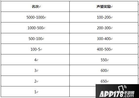 2.位列遭遇战排行榜的玩家每天将获得声望奖励,奖励在每天21:00发放,详细奖励情况见下表: