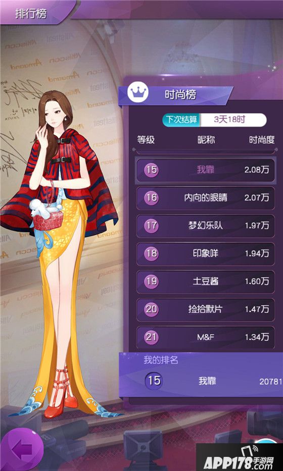 2. 时尚榜左侧显示人物的头像,右侧显示时尚榜的排名情况及玩家所在位次。