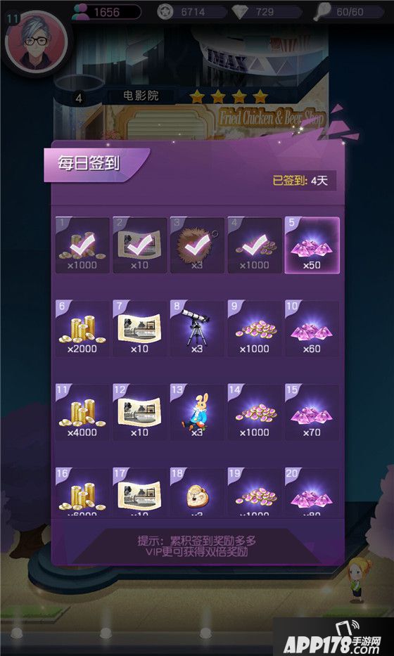 打开星你的签到面板,点击对应日奖励即可获得。且每5天中的第二、五天达到指定等级还可以获得双倍奖励!