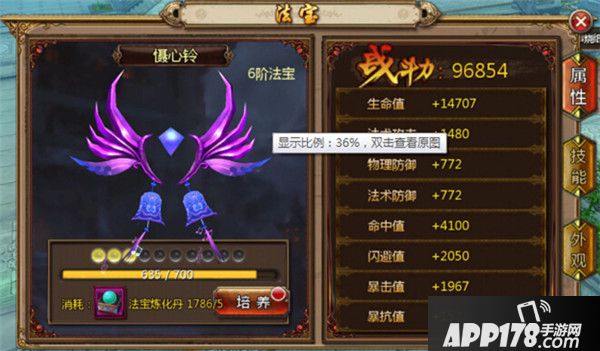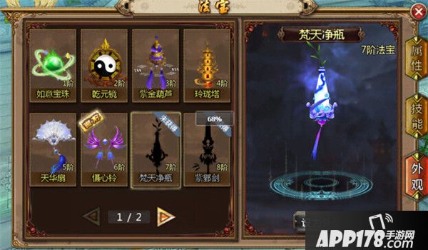 A、 目前版本共有15阶法宝,通过培养进阶,增加战力获得新的法宝技能。