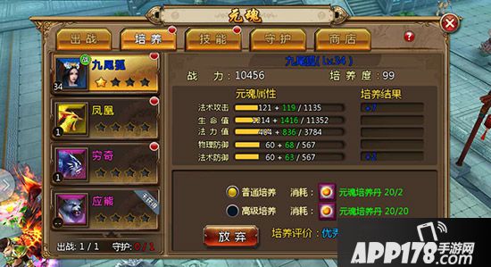 3、如果出现白色品质培养不满意,可以选择放弃,放弃不消耗培养次数,但消耗元魂培养丹,如果你想要只完美的元魂,就多准备培养丹;