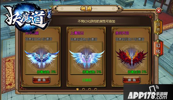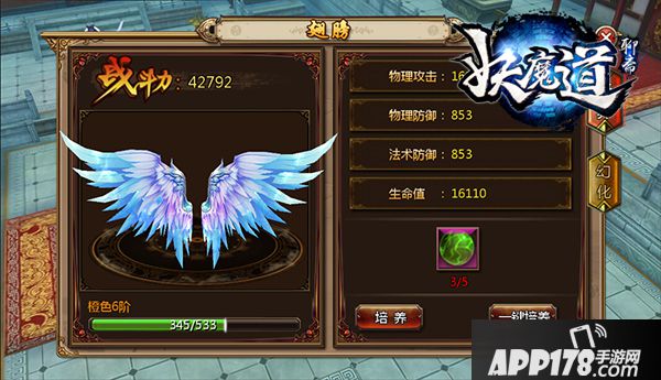 翅膀培养时,仅提升前三条属性。进阶时,数值提升幅度较大。