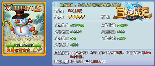 北方新年在冬季洗礼下都堆积着厚厚皑皑的白雪,酷爱在外东窜西窜的冒险王们最爱的是什么?!堆雪人!想像冰雪奇缘里的女王一样,拥有一个雪人守护骑士吗,《冒险战记》新年新奇宠——SS小精灵冰霜杰克迎风雪而生!闯关战斗中,冰冻敌人大幅破血,叠加到主人身上的生命和防御属性也是极高的!谁说精灵萌宠只能是各类小动物,现在就来新年《冒险战记》中领取应时应景的暴力雪人杰克吧!