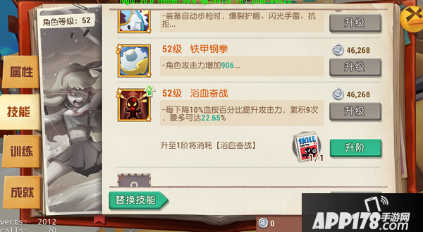 升阶将消耗玩家一定数目的对应技能书,技能的潜力随着阶数提升变得越来越高。