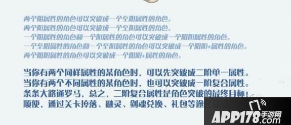 点击主界面-角色-突破,然后在右侧放入两张一样角色的牌就可以突破了,通过属性,可以培养出各种符合属性的角色,而且还会有专属个人剧情!具体的属性分类与距离大家可以看图。