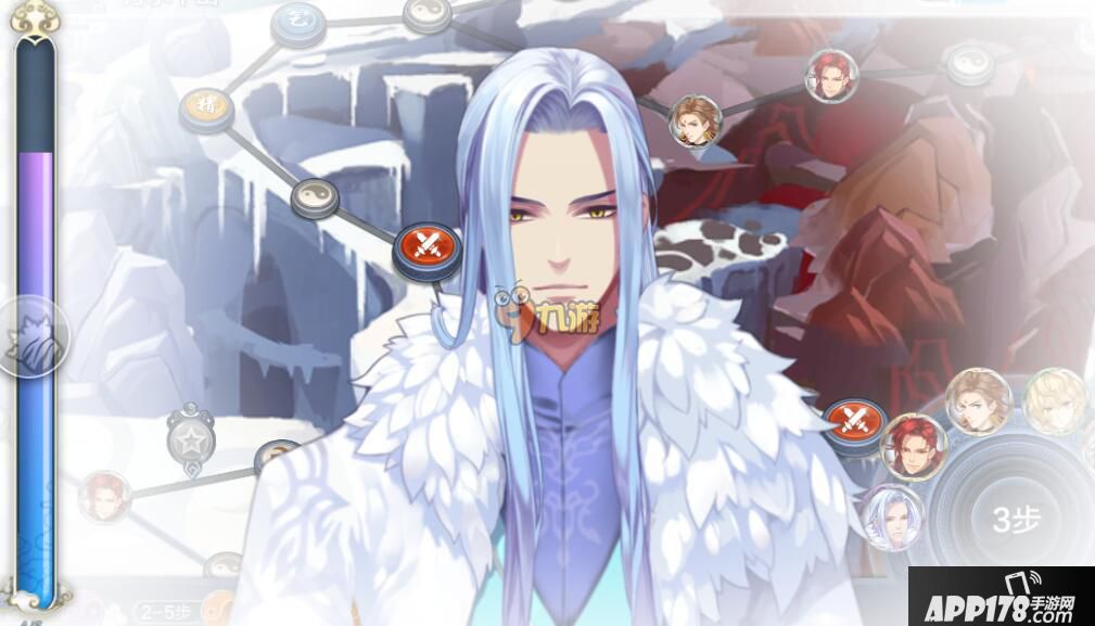 屏幕右下方是操作台,将男神头像拖入圆圈中间,即可根据角色属性行走相应的步数,玩法类似大富翁。走到对应的地方会进入战斗、获得精气神、或者与男神互动。