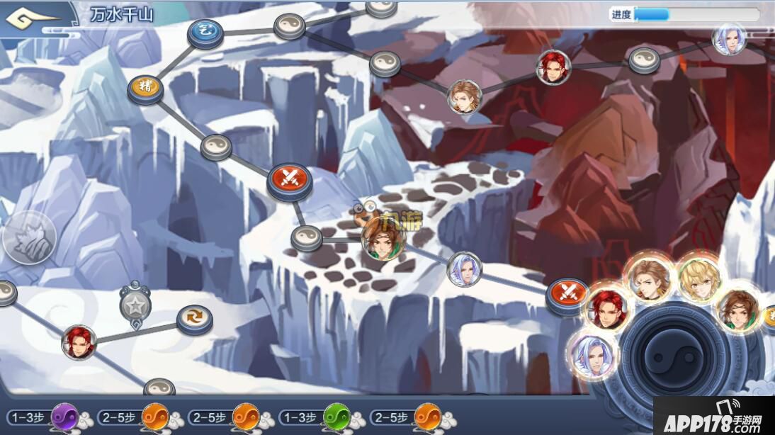 在主界面右侧点击万水千山即可进入。万水千山冰火岛在主线章节2-4后开启,而桃花岛在主线3-6后开启。