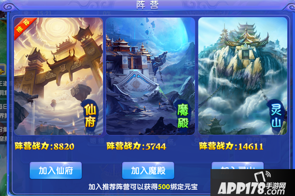 玩家可以挑选自己喜欢的阵营加入,但是加入系统推荐的阵营系统会奖励500绑定元宝