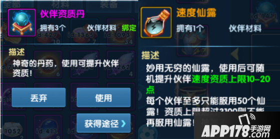 除了资质丹之外,资质上限还可以通过仙露提升,在珍宝商店有几率会刷出。虽然仙露只能提升固定的资质,但是提升的上限是比较高的,建议有钱一定要买。