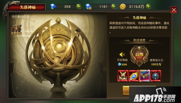 4)失落神庙全天开放,每天只可进入1次,大家要好好把握机会哦!