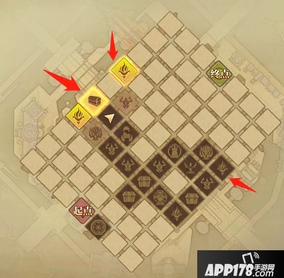 1)路线规划小建议(如下图),如在最后还有一些步数,可以将终点周围房间全部清空,最后再进入终点房间。这样就能探索更多房间,获取更多的积分。