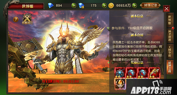 2.所在世界服内,有两组服务器世界等级达到巅峰300级,即可开启该玩法。(没有达到要求的世界服,无法看到“弑神之战”玩法~)