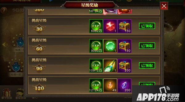 关卡奖励:六级宝石,七级宝石,八级宝石,九级宝石,海量经验